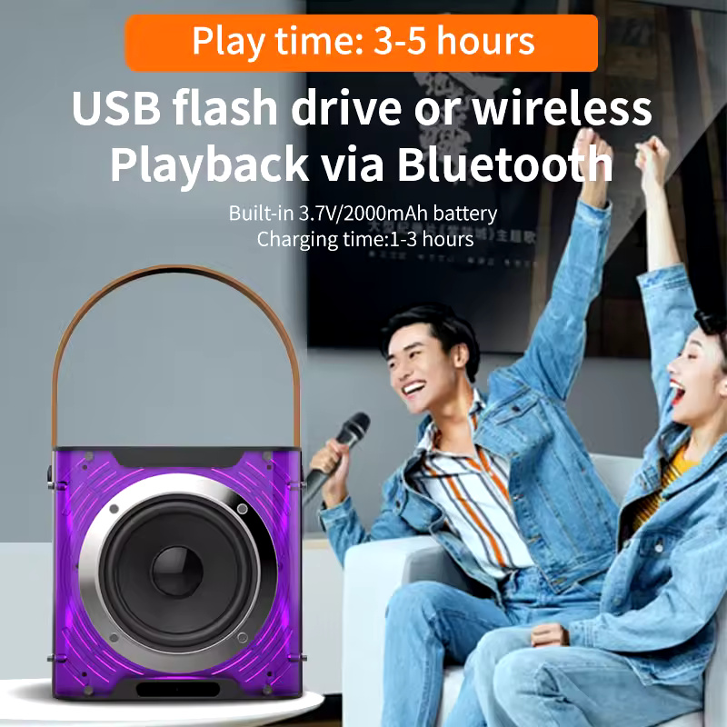 High-Power Bluetooth Karaoke Speaker – 360° Stereo Sound, Music Rhythm Lights & Dual Wireless Microphones | Built-in Phone Holder